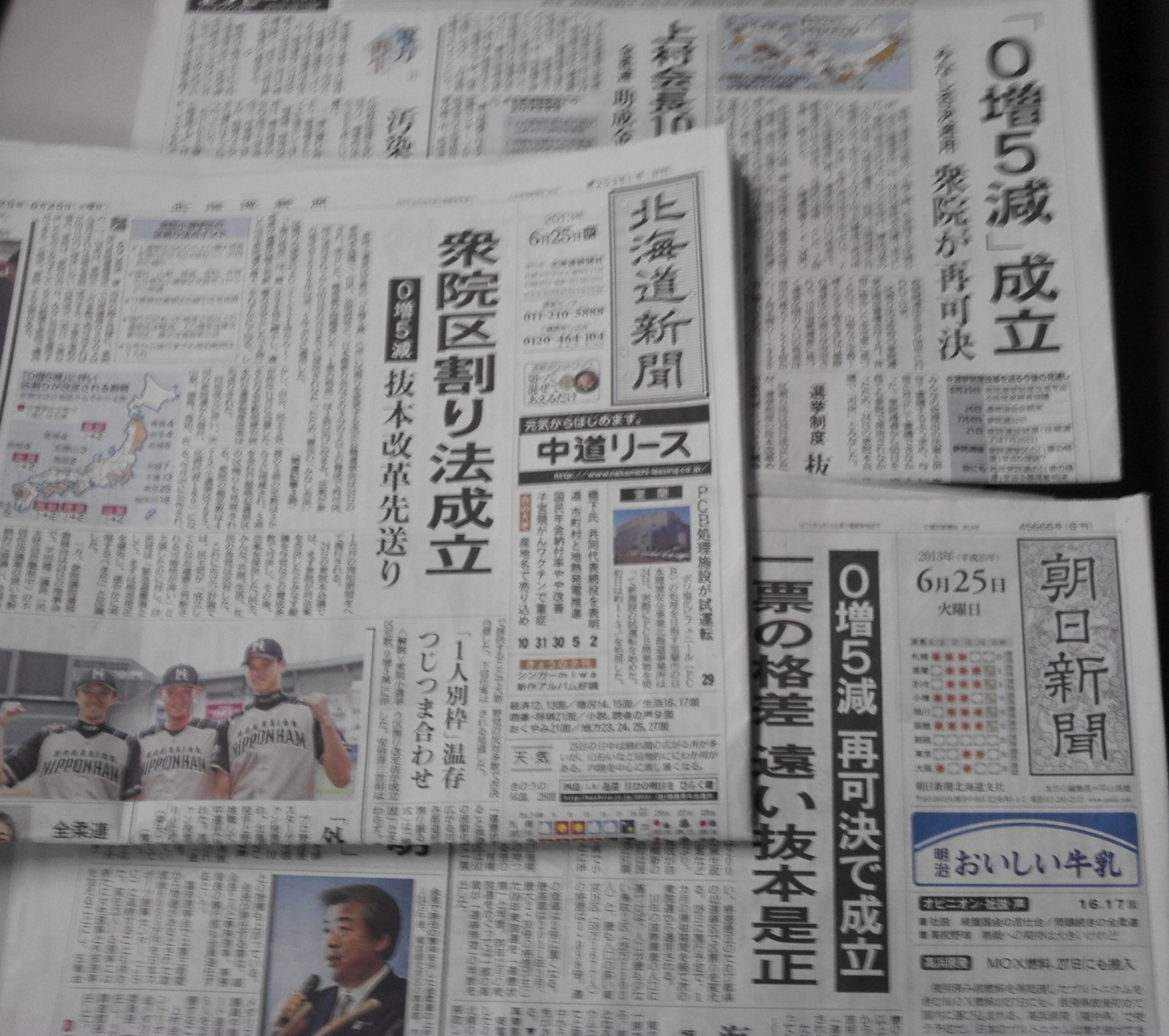 昨日、衆院小選挙区の「0増5減」区割り改定法案が、衆院本会議で自民・公明・維新の賛成で成立しました。