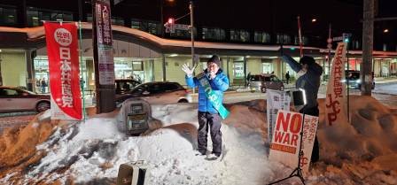 総選挙は4日目。今日は札幌市西区を周って訴えました。除雪が進んでおらず、住宅街はどこもグサグサ、轍(わだち)を回避しながらの走行でした。