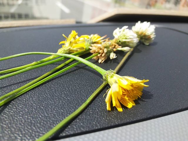 女の子が、草花を摘んで、私に渡してくれました。