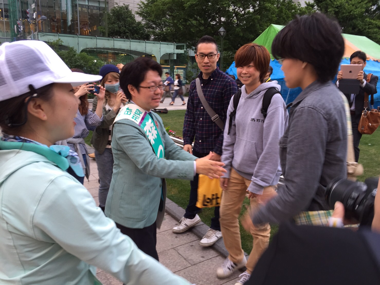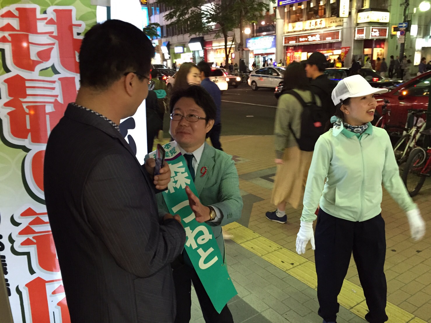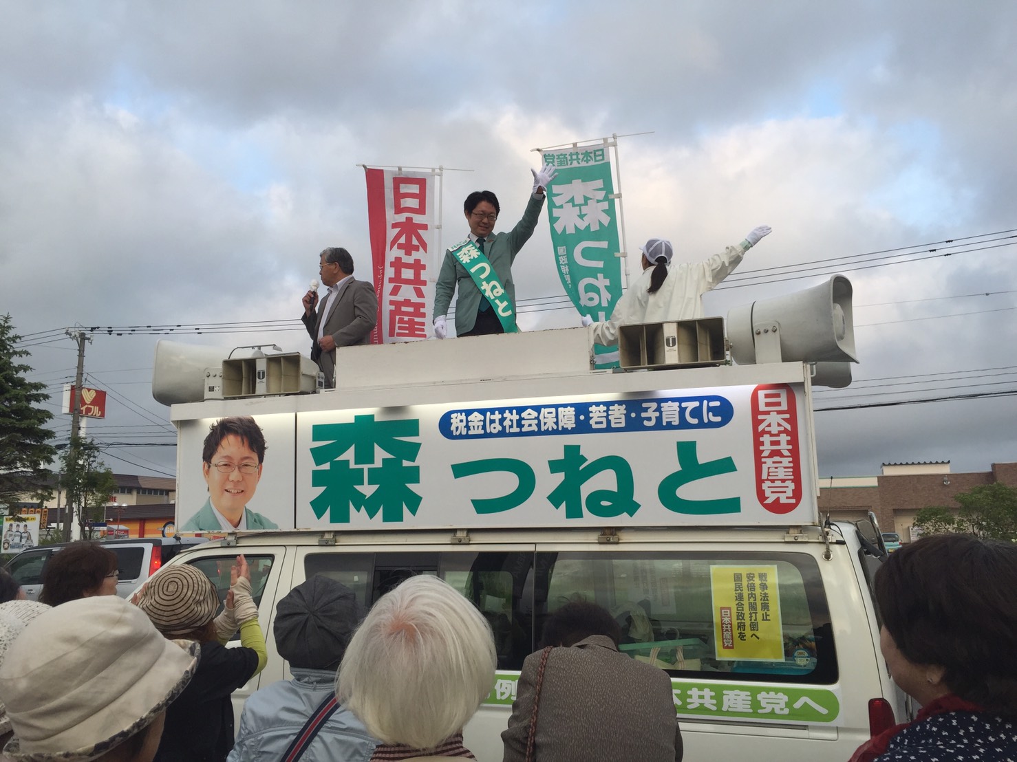 なんと、 無所属市議の方が森つねとカーの上に乗って、応援してくれたんです!