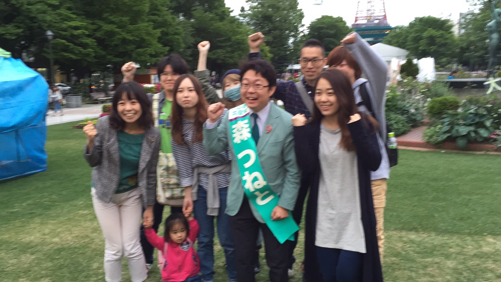 なんと、 無所属市議の方が森つねとカーの上に乗って、応援してくれたんです!