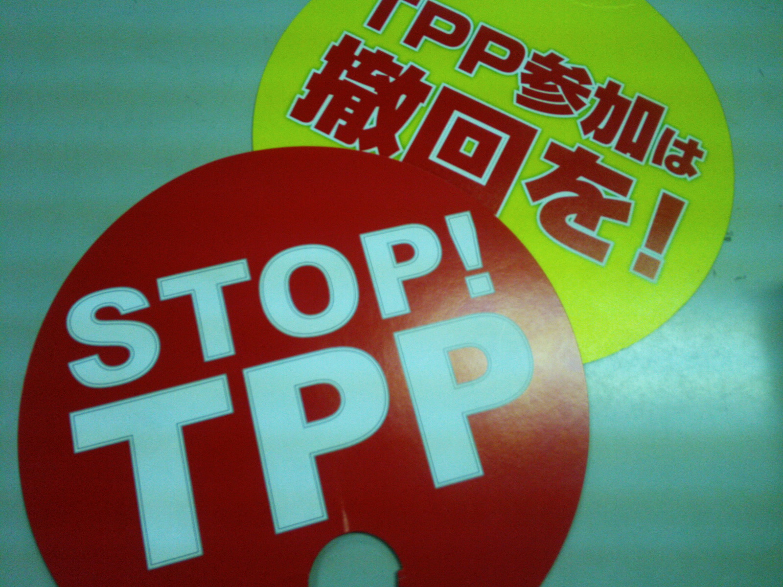 配られた「STOP! TPP」ウチワが大活躍です。